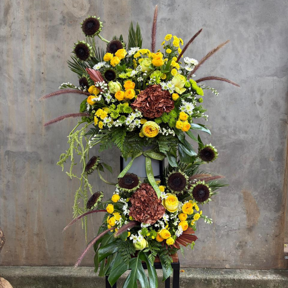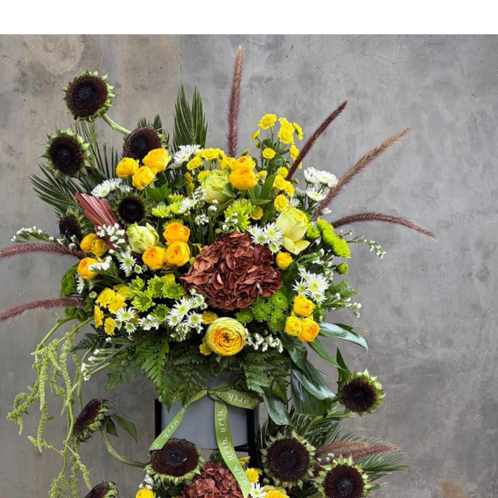4. Avoid Disturbing the Arrangement 🌸 : Unlike vase arrangements, this design is fixed into the oasis, so avoid moving stems around. Let the design stay as it is, and just focus on keeping it hydrated and cared for."